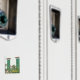 Fotografia de duas janelas tipicamente espanholas na ilha de Maiorca, no Mar Mediterrâneo, na Europa, com persianas verdes e oleandres em frente ao muro.