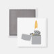 Este design, maravilhosamente detalhado, mostra um isqueiro prateado com uma grande chama.