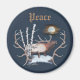 Este é um único "Um tipo de" Magneto de Refrigerador de Natal! Ela apresenta um Elk Touro Majestoso parado em uma Montanha Neve Incêndida à Lua...perto de uma Grove de Árvores Aspen! Pintura Bela Original Do Artista Kerry Miller.
