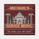 Este ímã quadrado engraçado e personalizado é perfeito para decorar sua geladeira de cavernas. Ele diz, "[Seu Nome] Garage Mahal" e mostra um esboço do Taj Mahal com martelos, chaves de fenda e um pequeno carro que parece estar estacionado no meio. Adicione facilmente seu nome ao topo. A linha "as regras sobre as ferramentas" também pode ser alterada. As cores são vermelho, cinza e laranja claro.