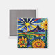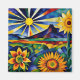 Manhã Colorida Girassóis Com Sunburst e Montanhas Trabalho de arte.