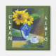 Minha ideia do sol da manhã, uma xícara de café e alguns girassóis cheios de alegria! As flores amarelas brilhantes são disparadas por um vaso azul. O todo é aprimorado pelo fundo do abstrato. Agora em um íman /CLEAN / DIRTY para sua máquina de lavar louça!