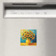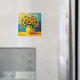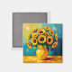 Um belo ímã com uma bela ilustração de um girassol amarelo em um bonito vaso amarelo feito em estilo impróprio.