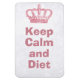 Um ímã giro que diz "mantenha calma e dieta". Uma coisa excelente para colocar na geladeira para te dar um pouco de motivação na sua dieta. Faz um presente de excelente.