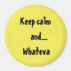 Tantas citações de "Mantenha a calma/ Fique calmo". Devíamos simplesmente dizer, "Fique calmo e Whateva." A citação está em um grande, amarelo, 3 polegadas, ímã redondo. Os magnetos estão disponíveis em outros materiais, formas, cores e tamanhos no Zazzle a partir da nossa loja BsApparelPlus. Obrigados para comprar conosco!