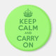 Um design verde brilhante com uma recriação do clássico Mantenha-se Calmo e Continue.