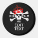 Um tema personalizado MANTENHA CALMA E seu texto em um crânio cruzado de preto sólido. Edite facilmente os dois campos de texto com seu próprio ditado criativo. Esta declaração de design humorística personalizada não deixa de fazer uma impressão excelente sobre ou fora dos caminhos batidos. Mensagem Use o link "Perguntar a este Designer" para entrar em contato conosco com suas solicitações especiais de design ou para obter assistência com qualquer das suas necessidades de personalização.