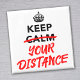 Mantenha sua distância é o novo normal. Não mais fique calmo e continue. Um slogan divertido que foi modernizado como um lembrete do distanciamento social. Fiquem todos seguros!
