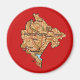 O design neste ímã apresenta um mapa do Montenegro com um fundo de cor de bandeira. Adicione um pouco de sabor montenegrino a sua casa.