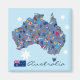 Íman azul com todos os famosos itens da Austrália em forma de mapa. Você sabe pelo que a Austrália é famosa? Você consegue descobrir todos os estereótipos famosos da terra em baixo?