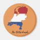Mostre a todos o seu amor pela Holanda com este legal ímã com um mapa dos Países Baixos preenchido com as cores da bandeira do país. A fonte e a cor do texto e a cor do plano de fundo do produto podem ser alteradas para ajustado de sua preferência.