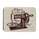 Ilustração de máquina de costura de manivela em forma de manivela, com "Um ponto no tempo poupa nove" na braçadeira