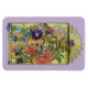 Íman no estilo flexível x 6" de 4" com uma imagem de um poster Mardi Gras vintage sobre fundo de lavanda. A adorável mulher na poster é esfolada no cheio do array Mardi Gras; lavada com miçangas, ouro e folhas verdes, penas laranja e flores roxas e azuis. Fronteira roxa. Veja toda a coleção do Magnet Mardi Gras nos TOUCHES ESPECIAIS | Seção Favoritos para festas.