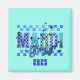 Um imã quadrado colofrul Mardi Gras em cores brilhantes soletrando a palavra em azul brilhante e preto