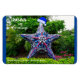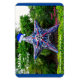 Tudo é feliz e brilhante com este ímã flexível colorido e único. A imagem festiva mostra uma escultura de estrelas-do-mar em Mounts Botanical Garden, em West Palm Beach, Flórida. A escultura elaborada foi parte da exposição "Lado-d-Lavado": Arte para Salvar o Mar que viajava. As esculturas gigantes da vida marinha são feitas inteiramente de detritos marinhos coletados de praias. As principais cores do peixe-estrela são azul real, rosa quente e branco. O Magnet de férias lê "Seas and Saudações, de Sunny Florida" com a legenda "Mounts Botanical Garden - West Palm Beach". O texto pode ser suprimido ou editado para personalização sem encargos adicionais. Fotografia de Glenda Motsavage, um escritor e autor viagem na Flórida.