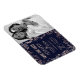 Rosa de ouro elegante, moderno e chic, e padrão floral azul de marinho de tendências, ímãs de cartão de casamento Save-the-Date. Este design clássico e sofisticado é perfeito para o casal de competição de tendências e na moda. Personalize com sua própria mensagem na frente, assim como um monograma personalizado inicial no verso. Todas as impressão de fotos.