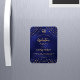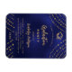 Um fundo azul marinho decorado com estrelas douradas falsas e um boné. A cor azul é irregular. Personalize e adicione um nome, detalhes da festa e ano. O texto Graduação e o nome são escritos com um script de estilo moderno, escrito à mão.