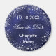 Uma Imã salve a data para seus convidados de casamento. Um fundo azul marinho, texto branco. A cor azul é irregular. Decorado com falso brilho prateado. Personalize e adicione seus nomes e data de casamento.