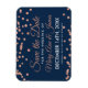 Design de casamento elegante "Salvar a data" com o Marinho de Glitter Confetti, Faux Dourado, Azul, nomes personalizados e texto de data.