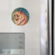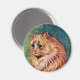 Um gato laranja ou marmelado de cabelo longo, com uma expressão fofa de um cartão postal vintage de 1907 intitulado "Puminosas Ruffladas" do artista excelente Louis Wain.