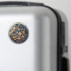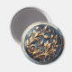 Um ímã redondo com design de mármore azul e cestaria dourado.