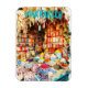 Na moda retro imã de fotografia a aquarela mostrando um mercado (bazar) de Marraquexe ou Marraquexe em Marrocos. Funciona excelente como uma lembrança viagem e também uma ideia de presente para memorizar suas férias no país do Magrebe