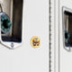Íman Máscara de pena amarela sobre padrão floral