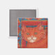 Um gato de marmelada parado sobre um tapete vermelho, azul e amarelo com temática de peixes. Design extraído de 'Mat Cats' um lápis original colorido desenhado por jessperry.