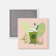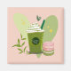 Design verde e rosa de xícaras bonitinhas de chá e macarões.