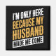 Me Here Because Husband Come | Square Magnet .A modern look with minimal visual elements. A minimal style with visual harmony. A modern style with clear proportions. A simple design created for broad appeal.