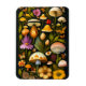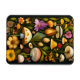 Imã artístico com flores coloridas, cogumelos e borboletas que se pode encontrar num campo de luxo no Primavera. Pintura digital botânica em estilo Haeckel moderno.