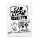 Cartoon de garagem engraçado. Centro de Serviços Automóveis de uma empresa de reparação de automóveis, reparação de automóveis e mecânica de veículos. Ótima ilustração de desenho animado de um mecânico atrás da mesa pronto para receber o pagamento. Há bebidas alcoólicas em ótica sob um cartaz que diz "Absorventes de Choque". Presente para garagem ou mecânico de carro.
