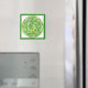 Esta roda verde é a terceira de uma série de designs originais. A mão de ©Patricia Fogelsonger pode ser usada durante a meditação. Esta design foi inspirada enquanto Patricia estudava artes de cicatrização espiritual. Originalmente, era chamado de roda cicatrizante multidimensional. É o que Patricia pensa disso como sendo. Este ímã verde e branco é um de uma série. Certifique-se de verificar os outros da série.