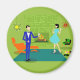 Este Meio século Modern Casal Magnet parece uma cena de uma comédia romântica. A design de arte minimalista ao estilo de 1960 apresenta um casal de desenho animado atraente desfrutando de uma noite romântica em casa. A sala sofisticada destaca uma parede verde de pedra com um fogo em chamas na lareira. Os fornos na sala incluem uma cadeira laranja, salgada com bancada correspondente, um relógio vermelho, starburst wall, um monitor amarelo, sputnik, e uma mesa lateral laranja, que abriga um gravador verde e portátil. No chão ao lado da mesa final, um registro de vinil pode ser visto saindo de um cobrir de álbum de kitschy. No centro do chão verde, há um tapete grande, retangular, lacrimogêneo. No meio da cena, temos um casal muito sofisticado. Há um homem suave em um terno azul real, camisa branca e gravata arco azul. O homem alto, escuro e bonito está olhando para seu adorável companheiro. A elegante mulher cabeleira está vestindo um vestido de aqua flouncy. Cada um deles segurando um vidro de cristal martini com uma azeitona flutuante. Saúde! Aqui está a noite perfeita em casa!