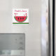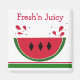 Um design divertido com uma suculenta fatia vermelha de melancia. Três sementes de diamante preto e uma casca verde. Uma borda vermelha, branca e verde. O ditado pode ser mudado se assim o desejar.