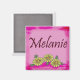 Personalizado com o nome Melanie em um fundo cor-de-rosa com margaridas.
