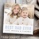 Imã de geladeira com sua foto e texto de fonte moderno e azul "Melhor pai de sempre" com sua mensagem abaixo.