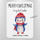 Um doce ímã flexível de Natal Feliz para o professor ou qualquer outro receptor. Um pinguim precioso azul e branco vestindo um cachecol vermelho e um gorro tricotado. Altere facilmente o complemento ou remova qualquer texto usando o Modelo fornecido. Se precisar de mais espaço de texto, altere letras maiúsculas e minúsculas. Água e mancha resistentes. Escolha 3"x4" (mostrado) ou 4"x6". Consulte "Sobre este produto" para obter mais informações.