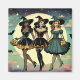 Um trio de lindas bruxas vintage andando de mãos dadas