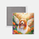 Para o dono de um animal de estimação, que merecia suas asas e halo, essa cor laranja e branca, barbuda, com sua sentida expressão de amor e ternura. A sua leal e fiel companheira irá sempre conceder essa bondade. Pet memorial de um cão adorável tão querido. Este filhote longo, filhote senta-se num jardim de flores cor-de-rosa e laranja, asas estendidas, e halo como o sol flutuando acima.