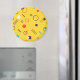 Arte legal, exclusiva, de tendências, de padrão de ilustração sem descontinuidades abstrato urbano feita com formas geométricas no estilo Memphis. Trabalho de arte de design gráfico colorido, moderno e lúdico. Cor vermelha, azul e preta em fundo amarelo.
