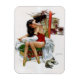 Vintage pincelou a ilustração de uma bela artista de circo morena Ela senta-se fixando seu cabelo com um gatinho dormindo aos seus pés. Uma tenda, caravana e cavalo ao fundo completam esta fotografia. Ela foi a imagem de dezembro de um calendário cavalheiro do século médio. Procure na minha loja produtos de correspondência de excelentes!