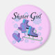 Nossos t-shirt do design da menina do patinador, as canecas, as bolsas, os cartões, os travesseiros, os pulsos de disparo de parede, as lembranças, os hoodies, e outros artigos de patinagem do tema caracterizam um par de skates do azul e da lavanda e mitenes em uma corda cercada por lotes de flocos de neve e do texto invernal que lê a menina do patinador!