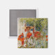 Poppies crescendo no pátio da frente com uma garotinha no meio. Vintage Carl Larsson.