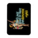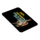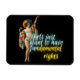 Campy imã de geladeira apresenta fotos de dançarinas fantasmas vintage com dançarinas de dançarinas com "as meninas só querem ter direitos fundamentais" em texto de neon azul e dourado.
