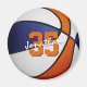 Esta equipe colorido o ímã do tema basquetebol apresenta a imagem realista de uma bola de basquete que tem painéis coloridos azuis, brancos e laranja - facilmente personalizados com o nome do atleta & número de camisa - por katz_d_zynes