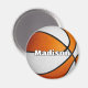 Este ímã de basquete personalizado para meninas ou meninos apresenta a imagem realista de uma bola de basquete que tem painéis brancos e laranja alternados - personalizados com o nome do jogador - por katz_d_zynes