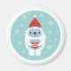 Um belo ímã de Natal com um fofinho de yeti vestindo um chapéu de Santa, segurando um grande coração vermelho em suas mãos com as palavras Feliz Natal.