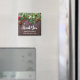 Magnet com fotografia rústica de uma mesa marrom de madeira com pinecones, agulhas de pinheiros, neve e Enfeites de natal. Festivo e adorável.