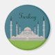 O imã apresenta um gráfico vetorial da Mesquita Sultan Ahmed em Istambul, Turquia. O texto pode ser personalizado conforme desejado.